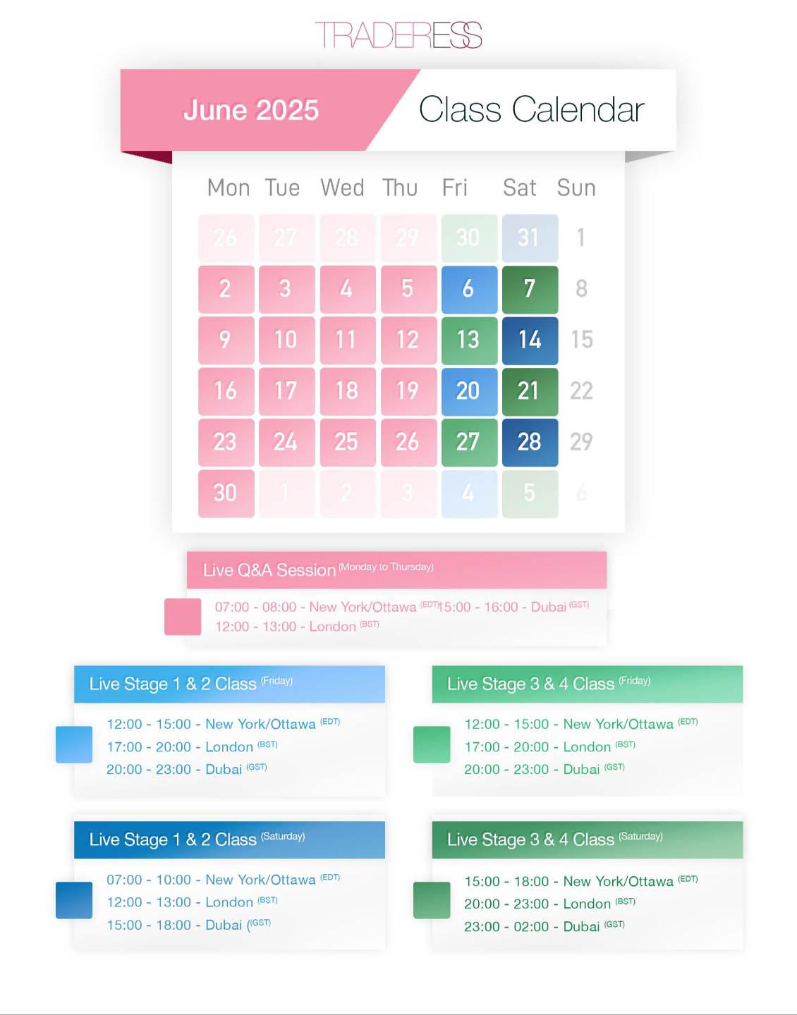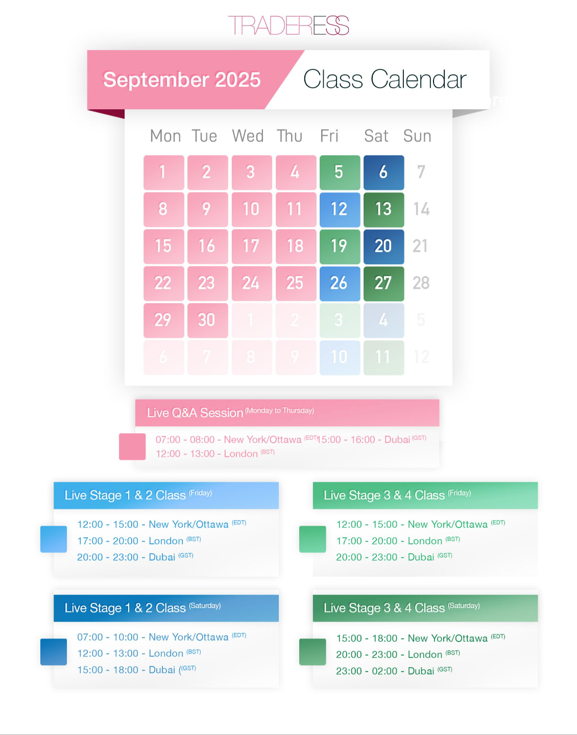 👆 Click any date to view class times