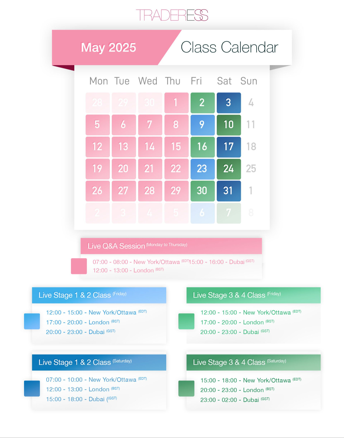 👆 Click any date to view class times