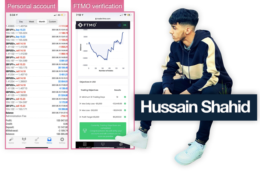 Yasin got FTMO funded within just 8 months and now has a regular monthly paycheck of over $5,000 (5% on his $100,000 account).